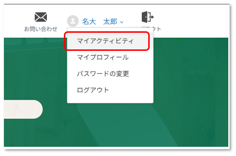 - サインインユーザの名前をクリックし「マイアクティビティ」を選択します。